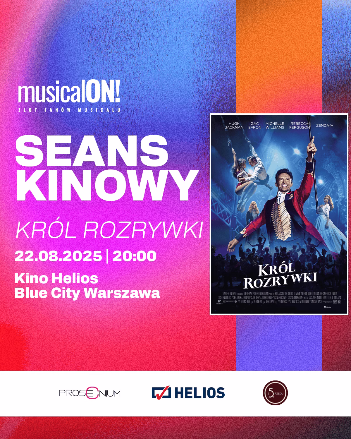W filmie wystąpiły gwiazdy światowego formatu, a wśród nich Hugh Jackman, Zendaya, Keala Settle czy Zac Efron. W trakcie seansu Widzów zachęcamy do śpiewania, tańczenia i głośnego reagowania! A także do przebrania się w klimatyczne kostiumy!