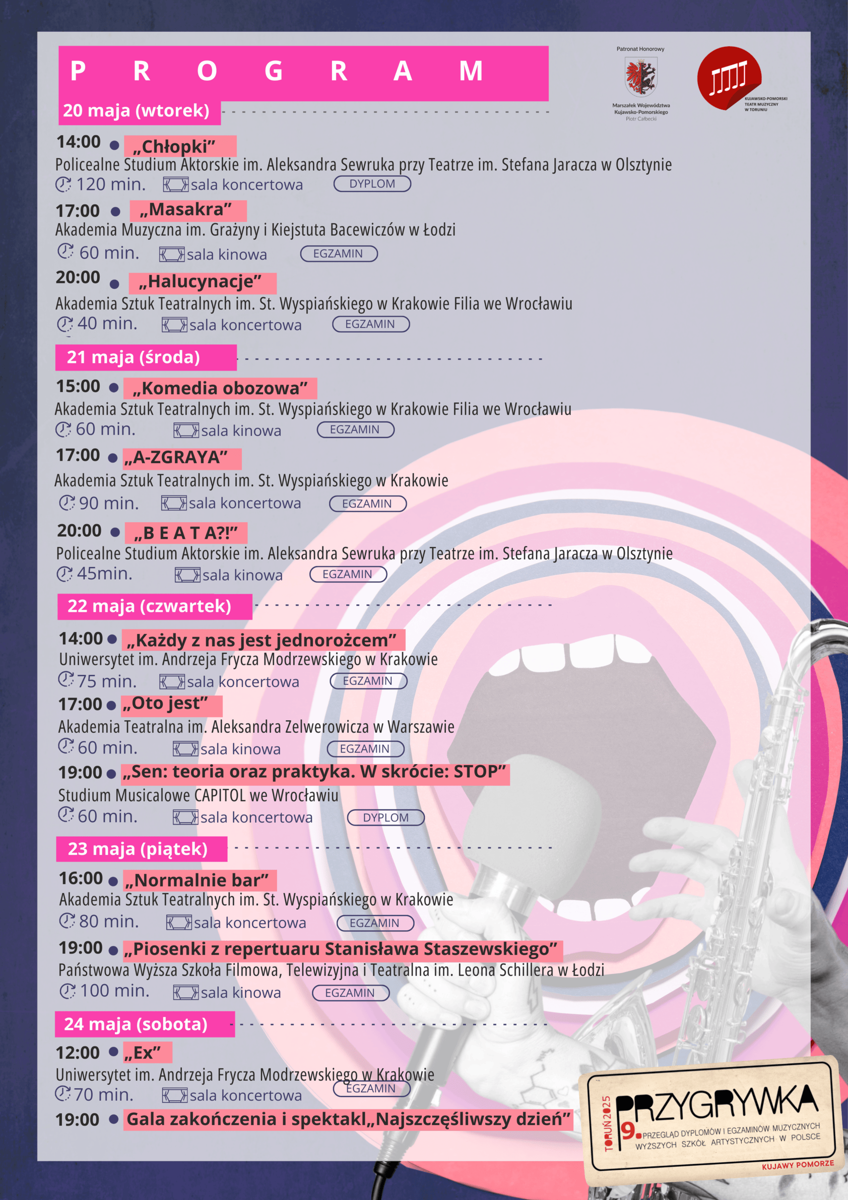 W dniach 20-24 maja 2025 roku będziemy mogli obejrzeć 12 spektakli dyplomowych i egzaminów muzycznych z całej Polski w jednym miejscu.