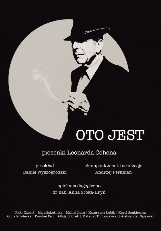 „Oto jest” *to spektakl muzyczny, który powstał w ramach zajęć dydaktycznych w Akademii Teatralnej im. Aleksandra Zelwerowicza w Warszawie. To fuzja jam session, spektaklu muzycznego i koncertu, w której wszyscy aktorzy są jednocześnie członkami zespołu muzycznego. Anna Sroka-Hryń, jako pedagożka i reżyserka, świadomie dobrała materiał, nad którym pracowała ze studentami. Z pozoru odległe im w czasie teksty Leonarda Cohena w tłumaczeniu Daniela Wyszogrodzkiego okazały się rezonować w nich z ogromną siłą, ukazując, że poezja Cohena wciąż porusza i jeszcze długo będzie poruszać kolejne pokolenia.
