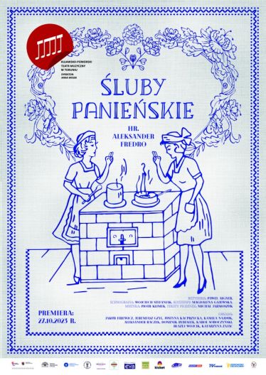 Plakat spektaklu "Śluby panieńskie" Teatru Muzycznego w Toruniu